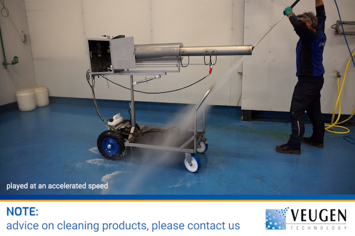 Op zolder staat de machine die het desinfectiemiddel automatisch doseert en daarna via leidingen verspreidt naar de nozzle-apparaten in de zes werkruimtes. Eéns per week, in de nacht van zaterdag op zondag, worden die ruimtes verneveld meteen desinfectiemiddel op basis van waterstofperoxide. De machine is aangesloten op ons alarm. Zetten we dat aan, dan hebben we er geen omkijken meer naar.” Het systeem werkt perfect, vertelt Meindert: “Alles in de ruimte, tot aan de binnenkant van kasten toe, wordt gedesinfecteerd. Bijkomend voordeel is dat ik nergens meer residu vind. Met het Halofog systeem van Veugen Technology hebben we dus de ideale balans gevonden tussen desinfectie en de juiste dosering. Tegenwoordig doen we wel acht tot tien weken met een jerrycan; dat scheelt zeker de helft.” Gaat het nooit mis met de desinfectie? Meindert: “Laatst deed ik een test met dipslides. De uitslag was nog binnen de marge, maar slechter dan normaal. Toen zag ik op het dashboard dat het alarm een paar keer niet was aangezet. Aan het systeem ligt het dus niet.”